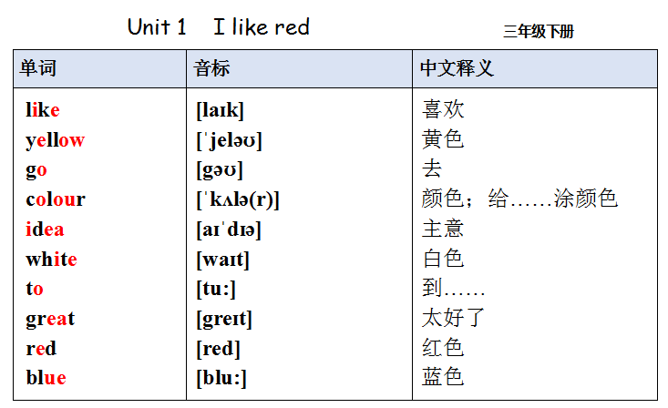 | new 新的 [njuː] | eye 眼睛 [aɪ] | head 头 [hed] |