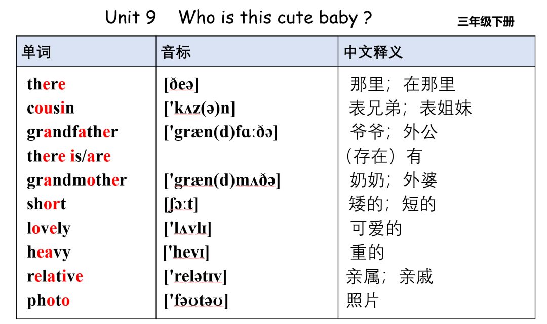 | hi 喂;你好 [haɪ] | grandpa 爷爷 [ˈgrænpɑ:] | your你的[jɔ:(r)] |