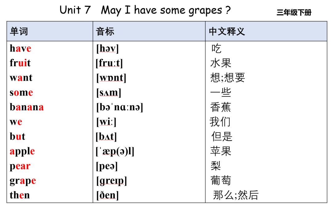 | Unit7 | hair 头发[heə] | an 一个[æn] |