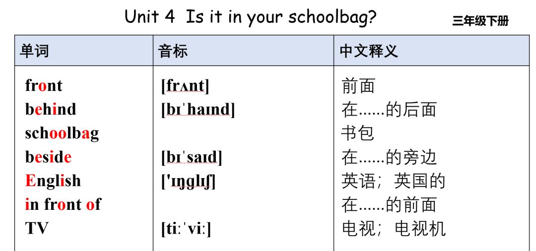 | bag 袋子;书包 [bæg] | table 桌子 [ teɪb(ə)l] | |